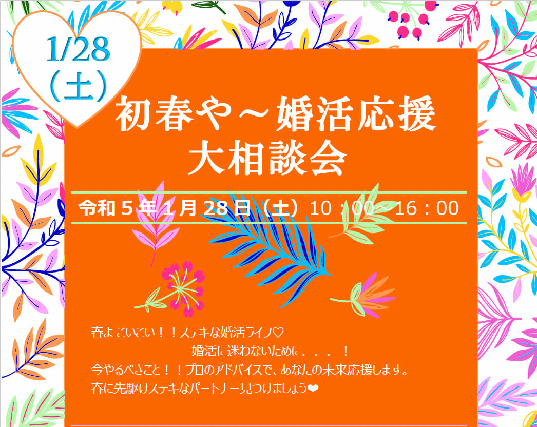わが子の結婚を心配される親御様!是非ご参加下さい。
