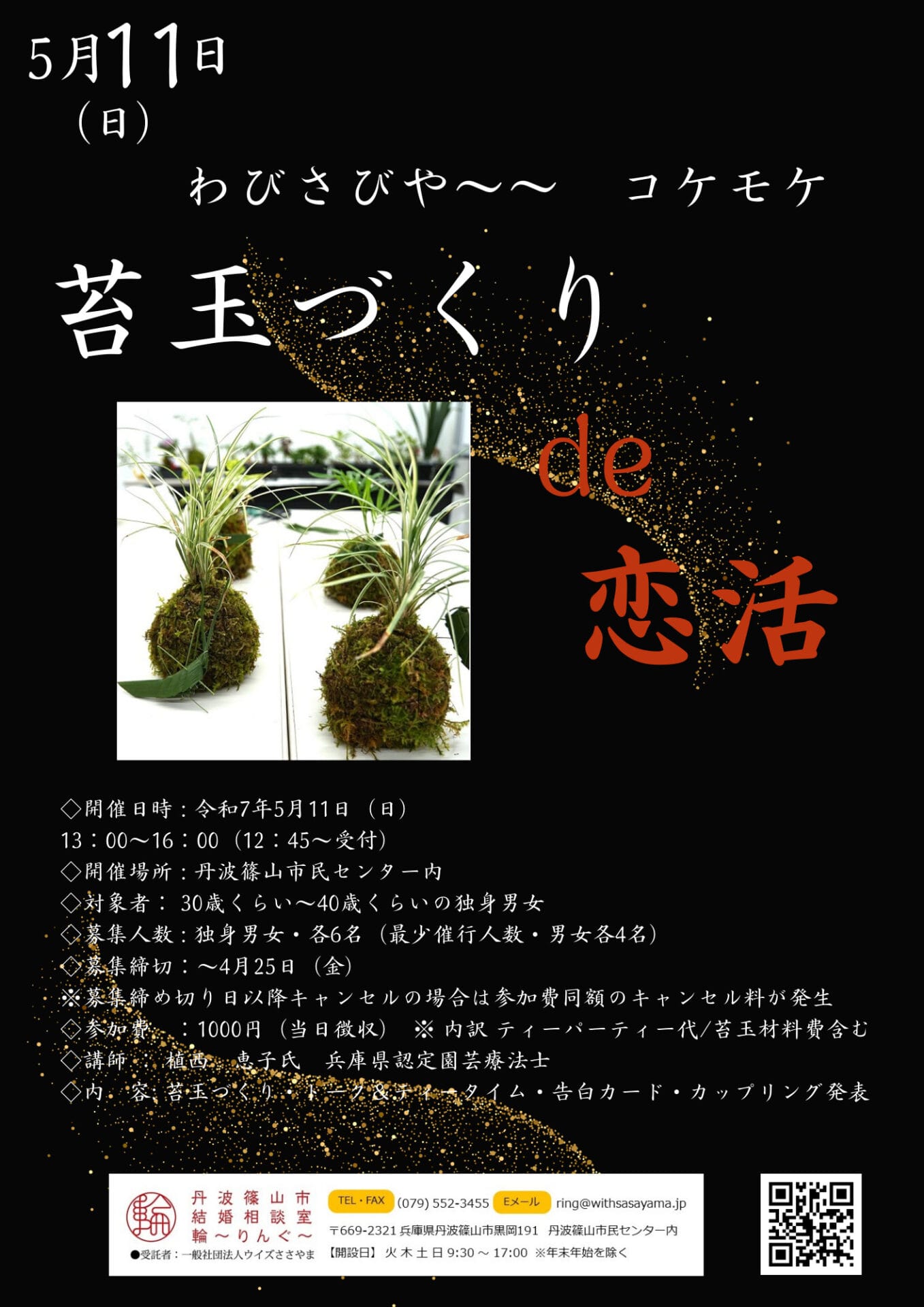 ◇内 容  :ワークショップ苔玉づくり・トークタイム・フリータイム(ティータイム)告白カード記入・カップリング発表