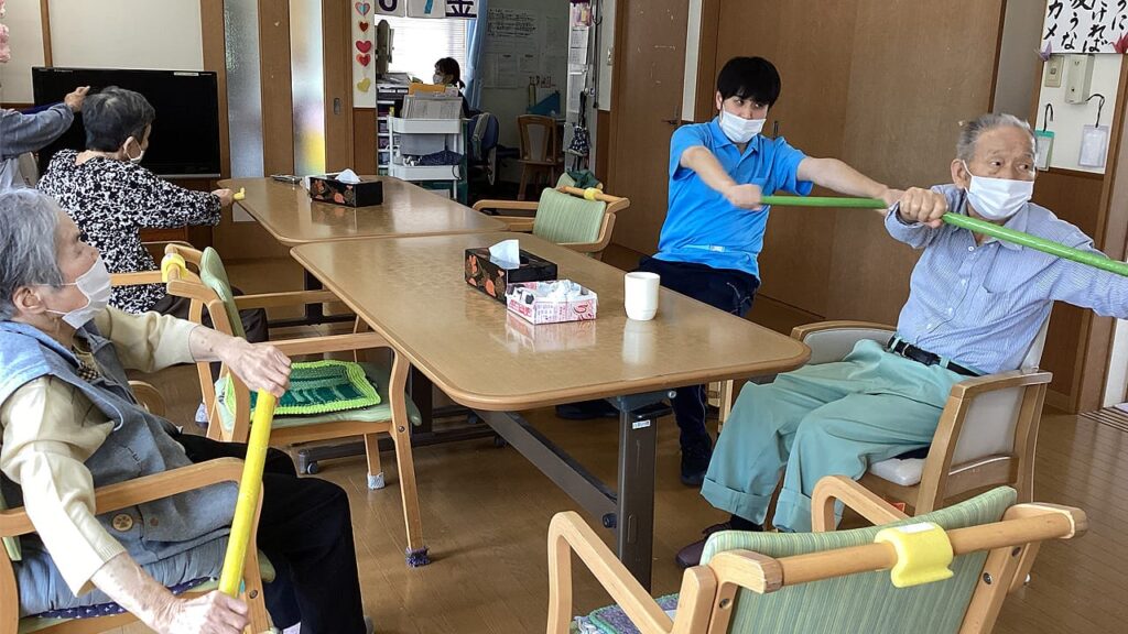 介護の仕事は日常生活をサポートする仕事です。閉じこもり予防や、リハビリ、入浴目的での利用、体調管理や医療処置での利用など様々なご利用者の生活とその人らしさを支え、寄り添うことが出来る仕事です。