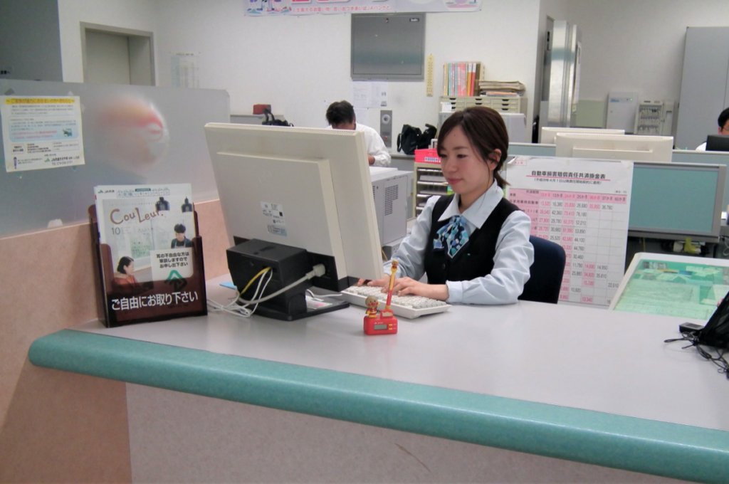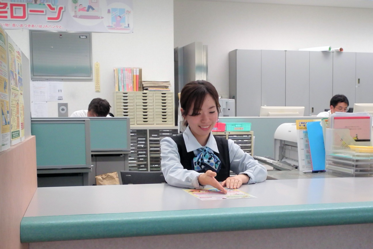 「お客様が窓口に来られた際に、相談に乗ったり、お金の支払い対応をします。貯金・共済・税金・相続・ローンなど、お金について幅広い分野を対応しています。」