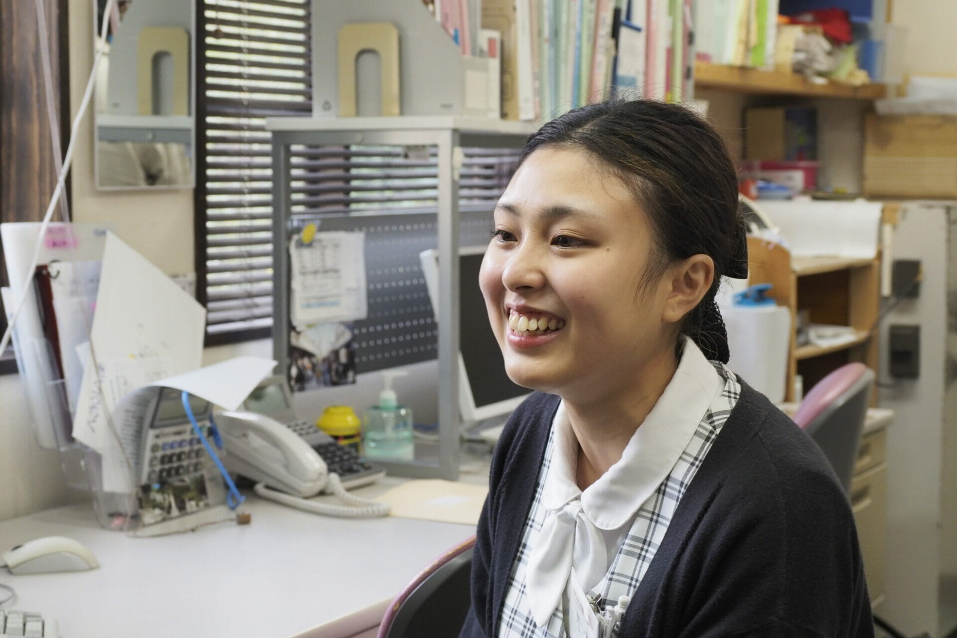 事務と接客の仕事を担当していますが、経験がなかったので戸惑いました。特に電話対応は緊張してしまい、クレームや道案内の対応をすることがとても難しいです。でも困ったときは自分だけで解決しようとするのではなく、お客さんに迷惑がかからないよう先輩に聞いてから対応するようにしています。