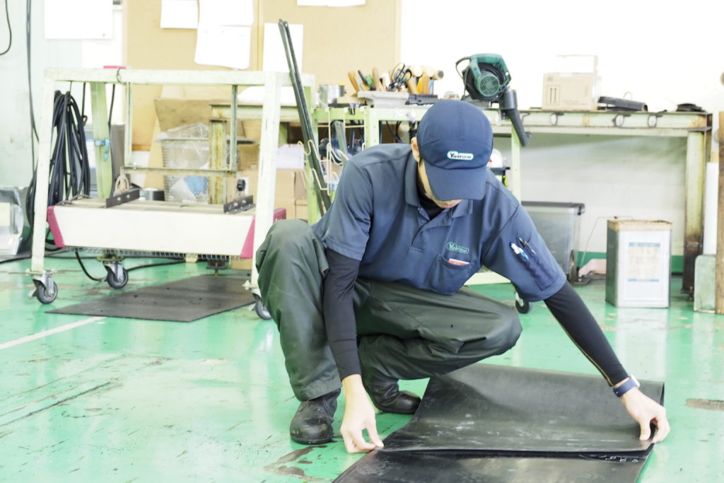 コンベアベルトを接着して輪に繋ぐ(ベルトコンベアーのエンドレス)作業を担当しています。今の部署は熟練した技術が必要なため、実際の作業の感触を大切に、経験を積んでいます。自分の技術がお客様のところに直接届くので、やりがいを感じます。